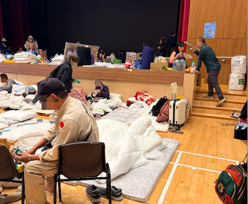 楊、譚二位社工陪同香港四川社團總會的唐安英會長、李聖根監事長及閻小穎執行會長到庇護中心探訪受災家庭,帶去關懷與慰問。