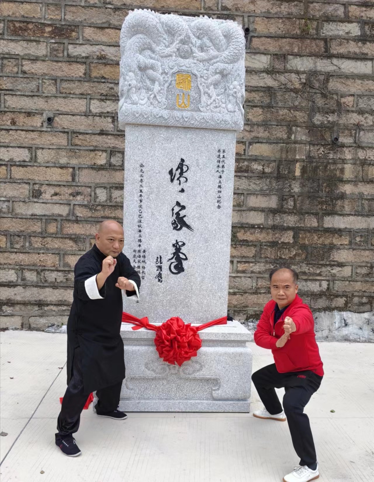 在莊重的揭幕環節,五座鐫刻著各流派傳承歷史與發展情況的紀念石碑,正式落成于南少林傳承館廣場。活動現場,儒家拳代表潘立騰先生以一套“禮武合一”的剛柔拳法,展現了獨特的儒家風骨。