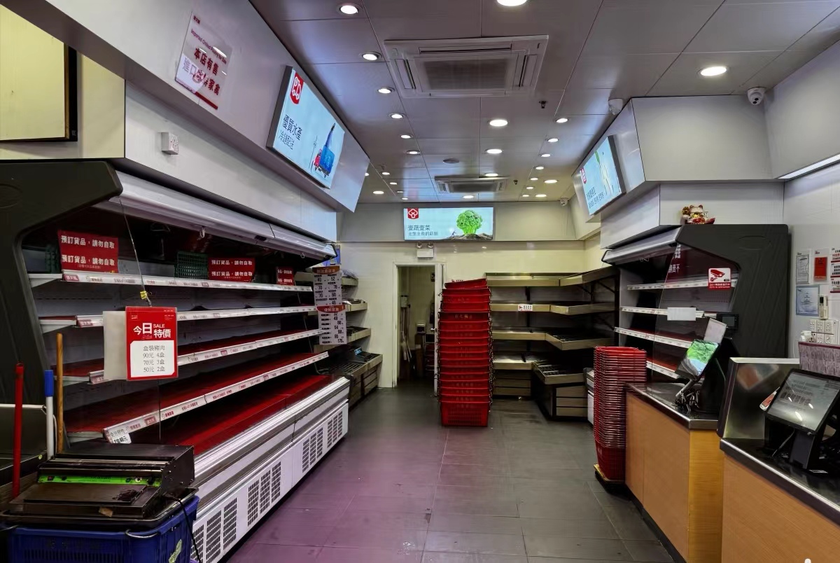 肉檔前,市民王小姐手持清單,一口氣購買了未來三日的肉類。“牛肉新鮮,排再久隊也要買。”她表示。另一位市民麥女士肩扛兩大袋食材,稱家中六口人需“能買多少買多少”。“賣完就沒了,貴也顧不上了!”她指著空蕩蕩的菜架說道。