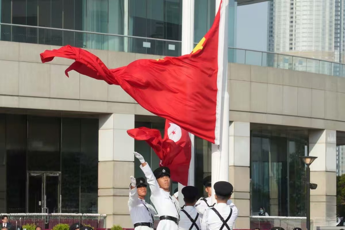 升旗儀式上午8時在灣仔香港會議展覽中心外的金紫荊廣場舉行。政府官員、社會賢達及制服團隊成員出席儀式。升旗儀式中,警察樂隊進行奏樂,護旗方隊以中式步操進場。在歌唱家林國浩和李洋的領唱下,何東中學和英皇書院合唱團獻唱國歌,特區政府紀律部隊在空中和海上敬禮。