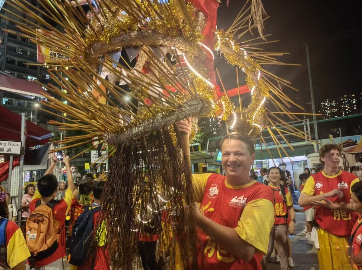 “舞火龍背後體現了吃苦耐勞的精神,它團結起社區居民。”張國豪説,扎作“火龍”、舞火龍,每一步都靠義工參與,製作一條“火龍”要耗時約兩個月,工序繁複。“但正因為不易,更顯珍貴。”