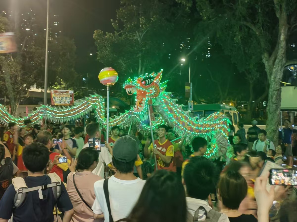 香港大中華通訊社電昨(10月6日)晚,港南區各界聯會在香港仔舉辦「火龍飛舞迎中秋 萬眾歡騰賀國慶 香港仔火龍盛會」,吸引了大批市民前來觀賞。