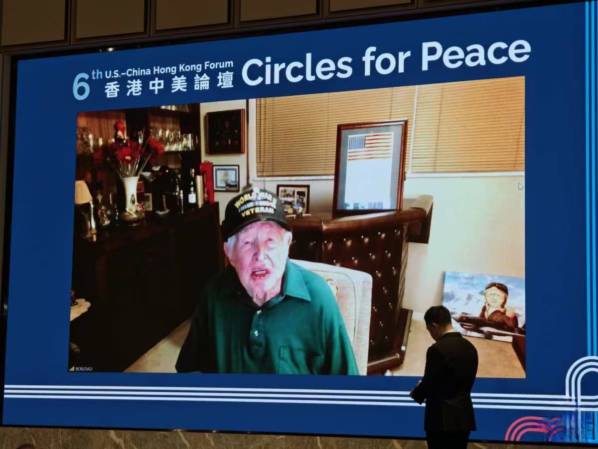 論壇以「共築和平之環」主題開場,在現場視頻連線了已經101歲的飛虎隊老兵Robert Moore。Moore回憶,在他執行的96次飛行任務中,「團隊的作用無可替代」,運送物資的飛機引擎還未熄滅,他的中國戰友已在全力卸貨。如今世界存在着海平面上升、洪水等災害,他強調團隊作用無可替代,「相比單個國家,團隊協作能更有效地應對這些挑戰」。