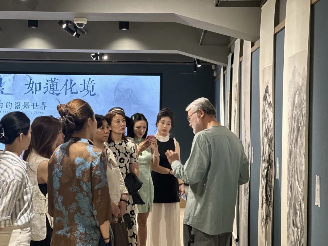 林天行先生致辭時高度評價劉知白的潑墨畫創作,他認為劉知白的潑墨畫清透、靈動又充滿骨力,蘊含著一種獨特的「清雅」,其作品結合了蘇州文化的儒雅與貴州山水的靈秀,留白恰到好處,自由奔放卻不失節制,將貴州山水表達地淋漓盡致,體現了「以形寫神」的藝術境界。