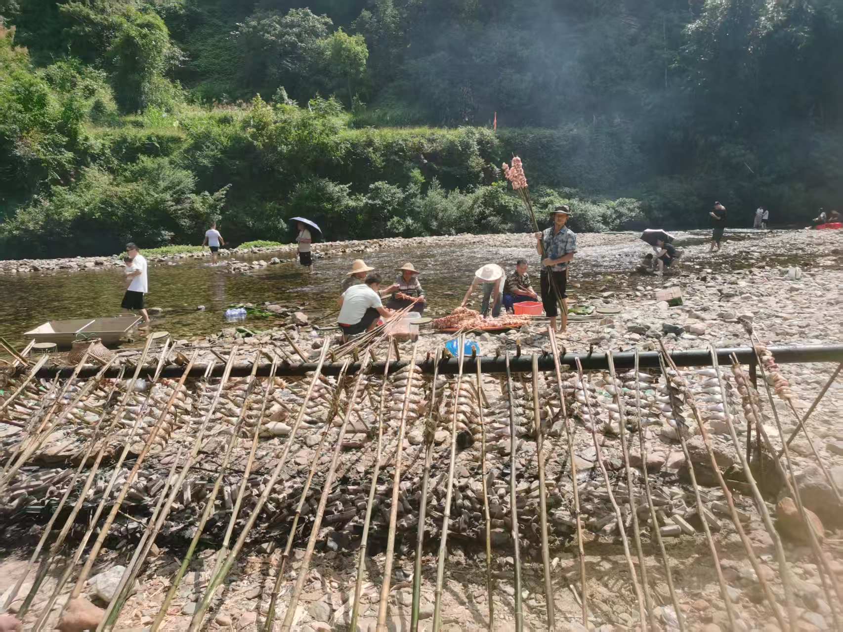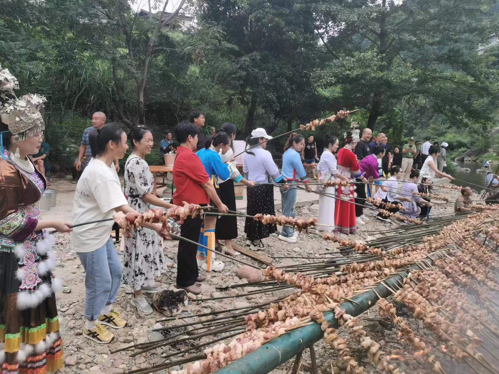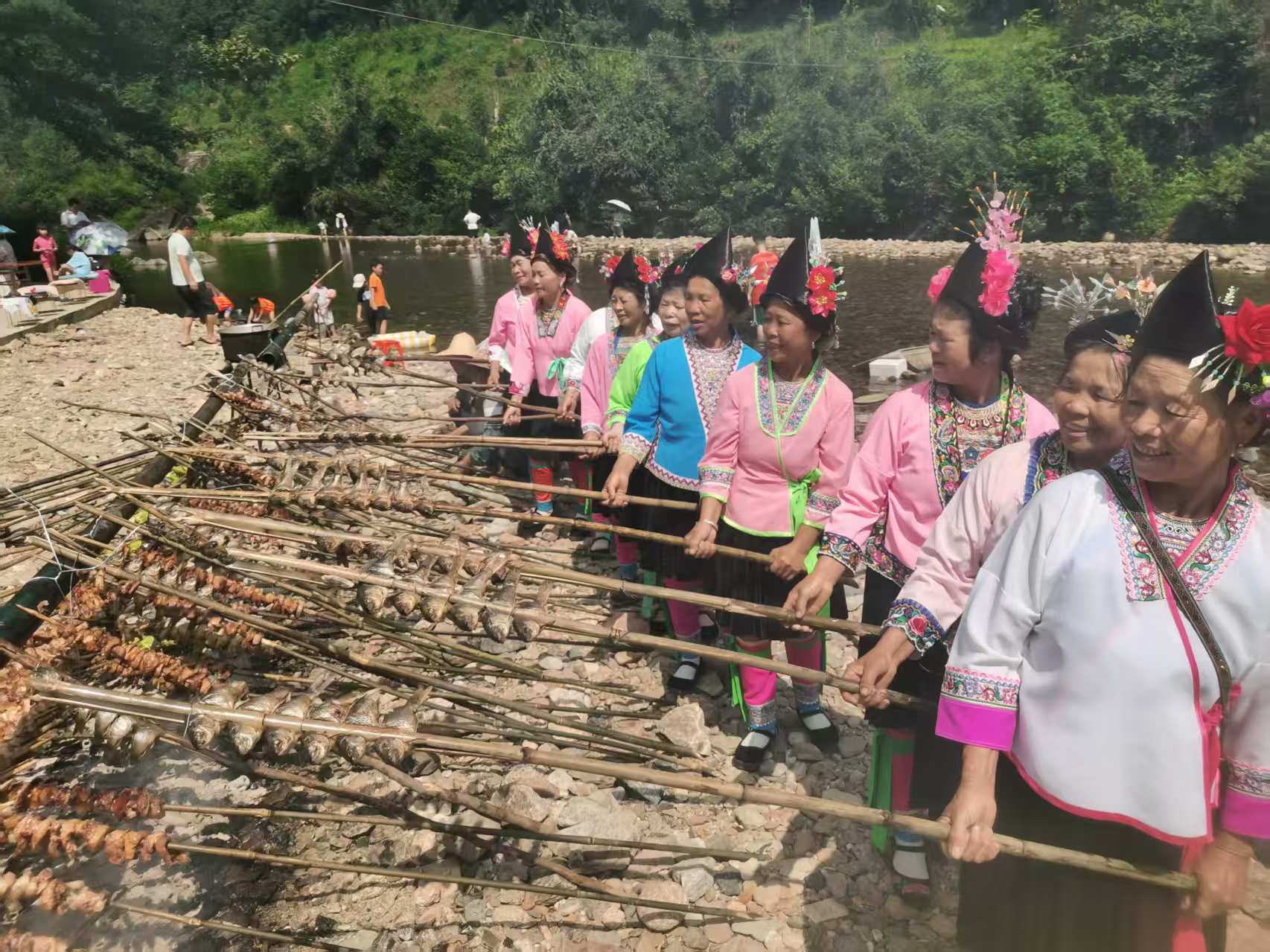 近年來,元寶村深挖“生態+文化”雙引擎,將燒魚節打造成一張閃亮的鄉村名片。從串魚時“三繞兩紮”的古法技藝,到沙灘文旅融合的沉浸式體驗,民俗的“根”與時代的“魂”在這裡交織生長。“未來,我們要讓燒魚節成為連接過去與未來的橋,讓苗寨的日子像炭火上的魚串,越烤越香!”賈明文的承諾,道出了村民對美好生活的熱望。