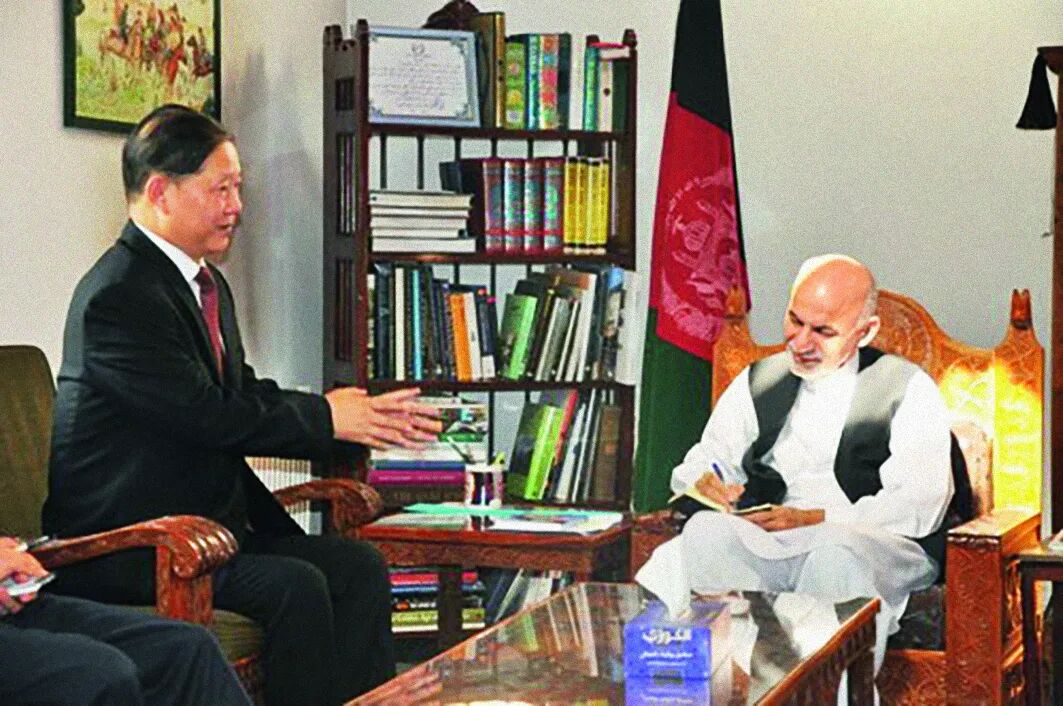 2014年7月,孙玉玺(左)在阿富汗喀布尔拜会阿总统候选人加尼。