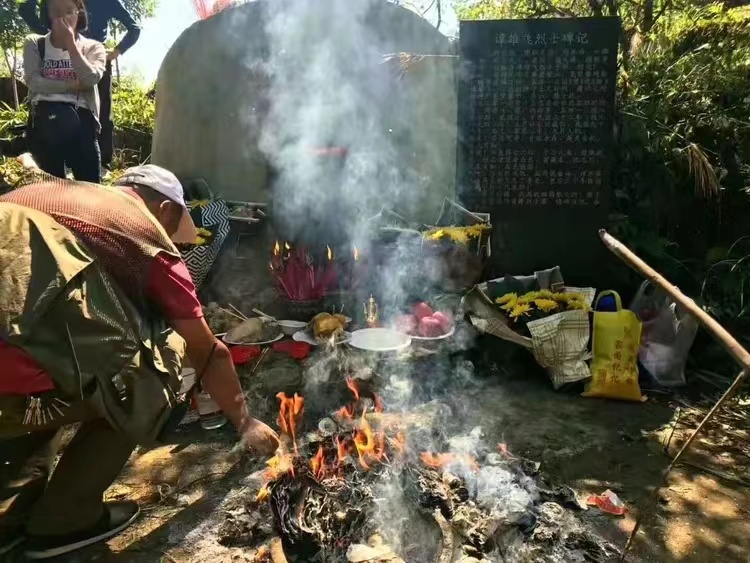 在尋親暫時無望的情況下,2018年10月9日,柳州志願者決定以家鄉人的身份,帶著家鄉的泥土、酒水等,赴長陽譚雄飛墓地按照廣西的習俗舉行了一次祭拜。