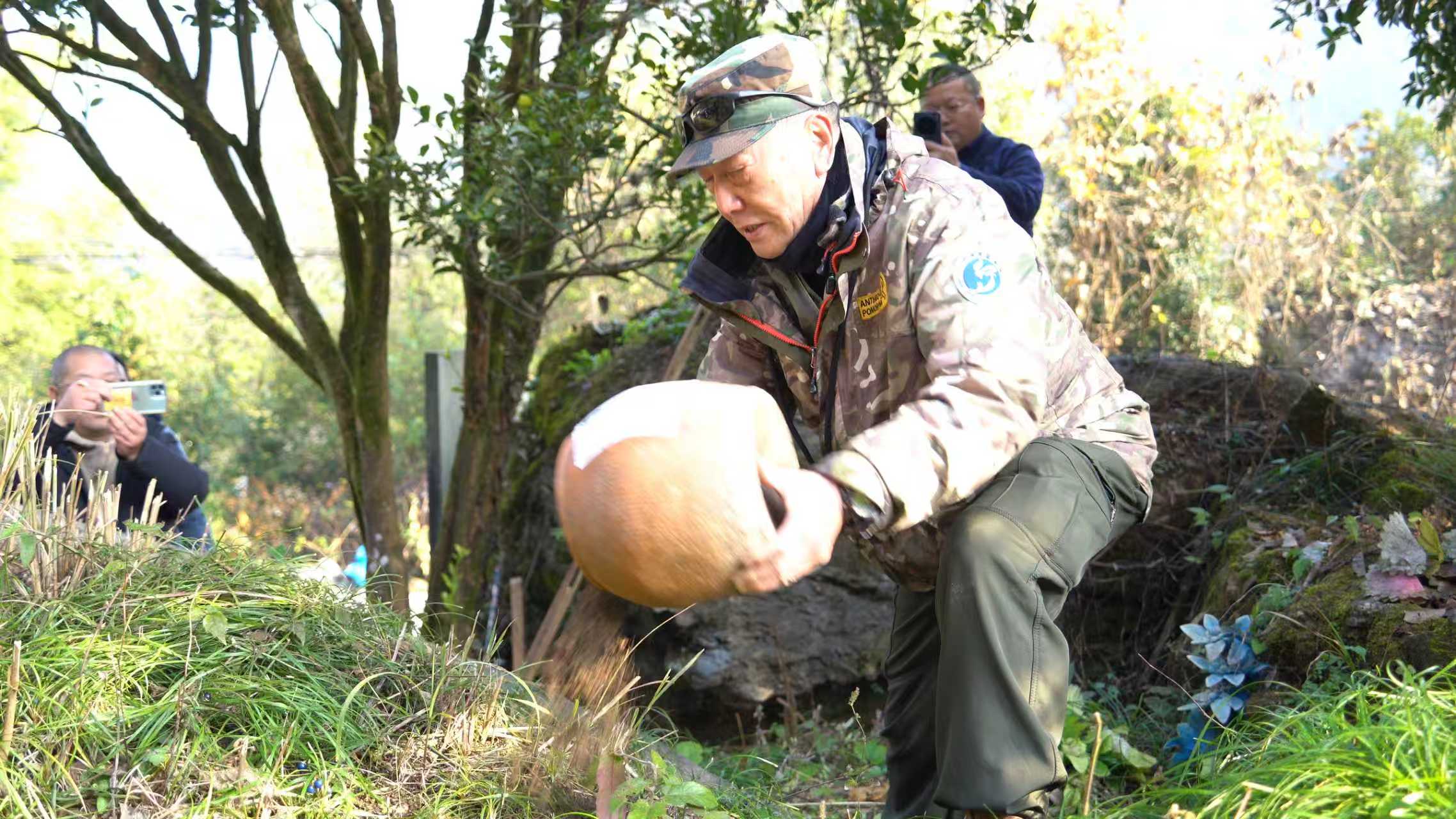 群山肅立,丹水靜流。譚雄飛烈士墓前,來自湖北關愛抗戰老兵志願者團隊的長陽志願者與各界人士整齊列隊,素色服裝在冬日山風中微微拂動。素淨的花籃靜靜擺放在墓碑前,一雙佈滿歲月痕跡的手捧起盛有故鄉泥土的陶罐,將來自廣西壯族自治區柳州市柳江區基隆村譚家屯譚家老祖墳墓旁的泥土緩緩撒在譚雄飛烈士的墳墓上。