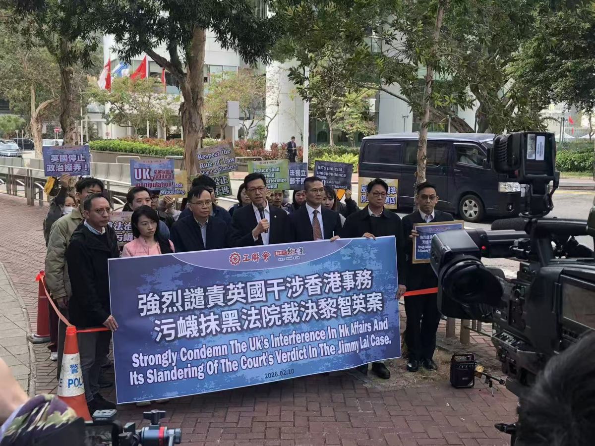 當天,工聯會立法會議員吳秋北、鄧家彪、陳穎欣及工聯會區議員及社會事務委員會代表到英駐香港領事館抗議,強烈譴責英政府詆毀抹黑香港司法制度,干預香港內部事務,汙衊抹黑法院裁決黎智英案。