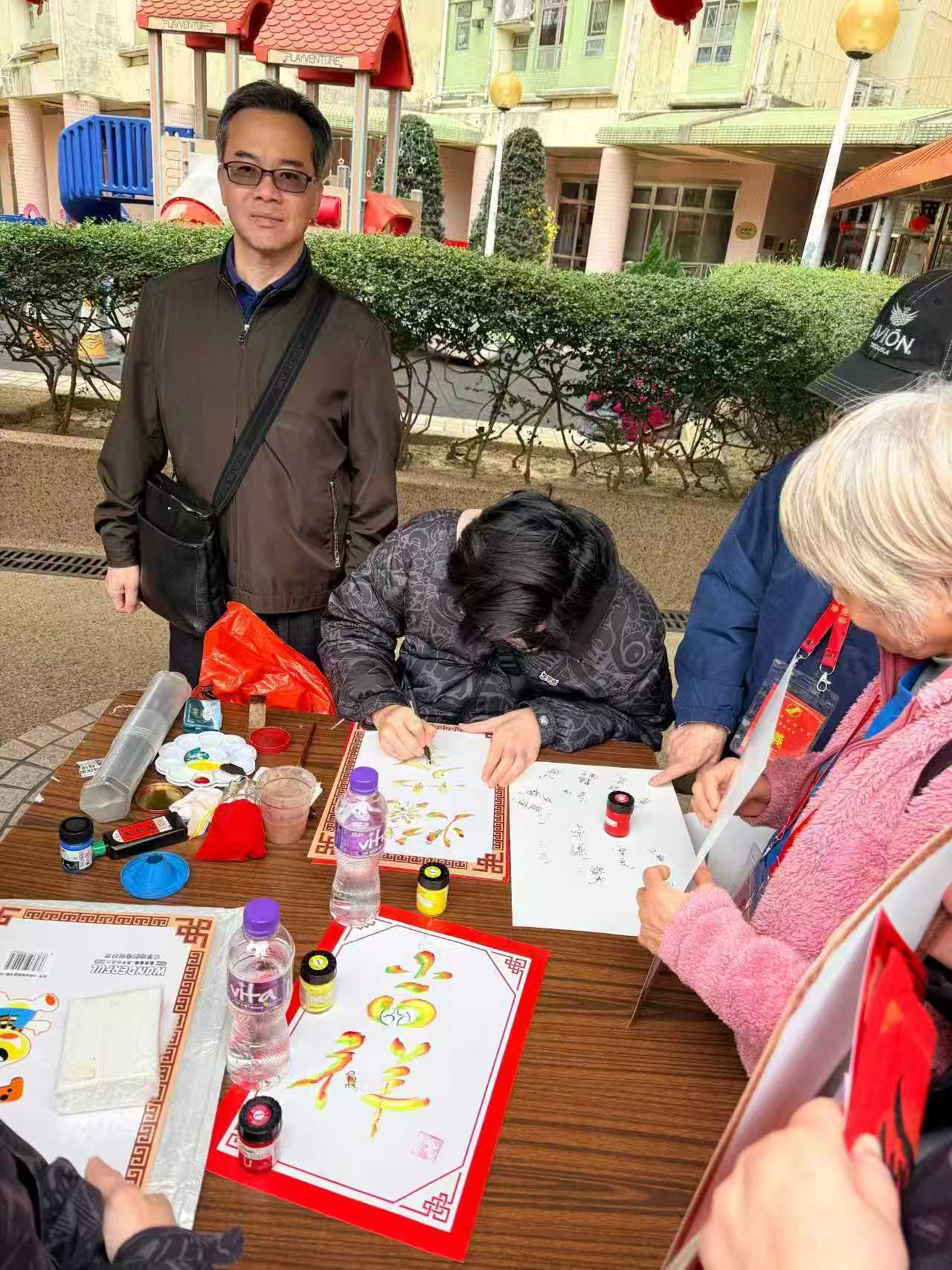 活動現場設書法、剪紙、燈籠摺紙及禮遇派發四大區域,實現全齡段參與,讓傳統文化體驗與民生關愛深度融合。禮遇派發區熱鬧非凡,工作人員與義工將「福飯」、水果和手寫揮春逐一分發,每份禮品都蘊藏馬年美好祝願。