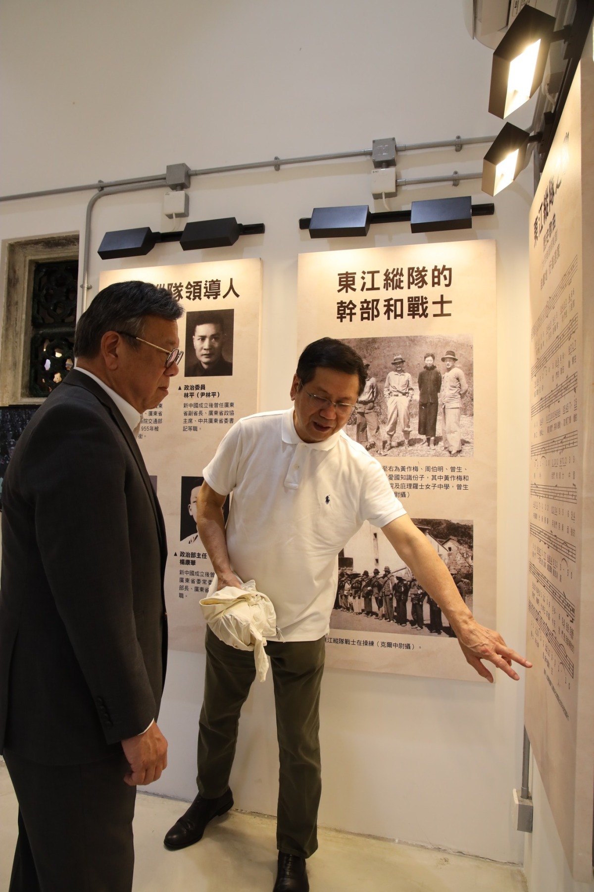 香港大中華通訊社電 商務及經濟發展局局長丘應樺近日到訪沙頭角抗戰紀念館,與「抗日一家人」沙頭角南涌羅氏後人,包括紀念館館長黃俊康等交流,回顧香港抗戰英雄的事跡。