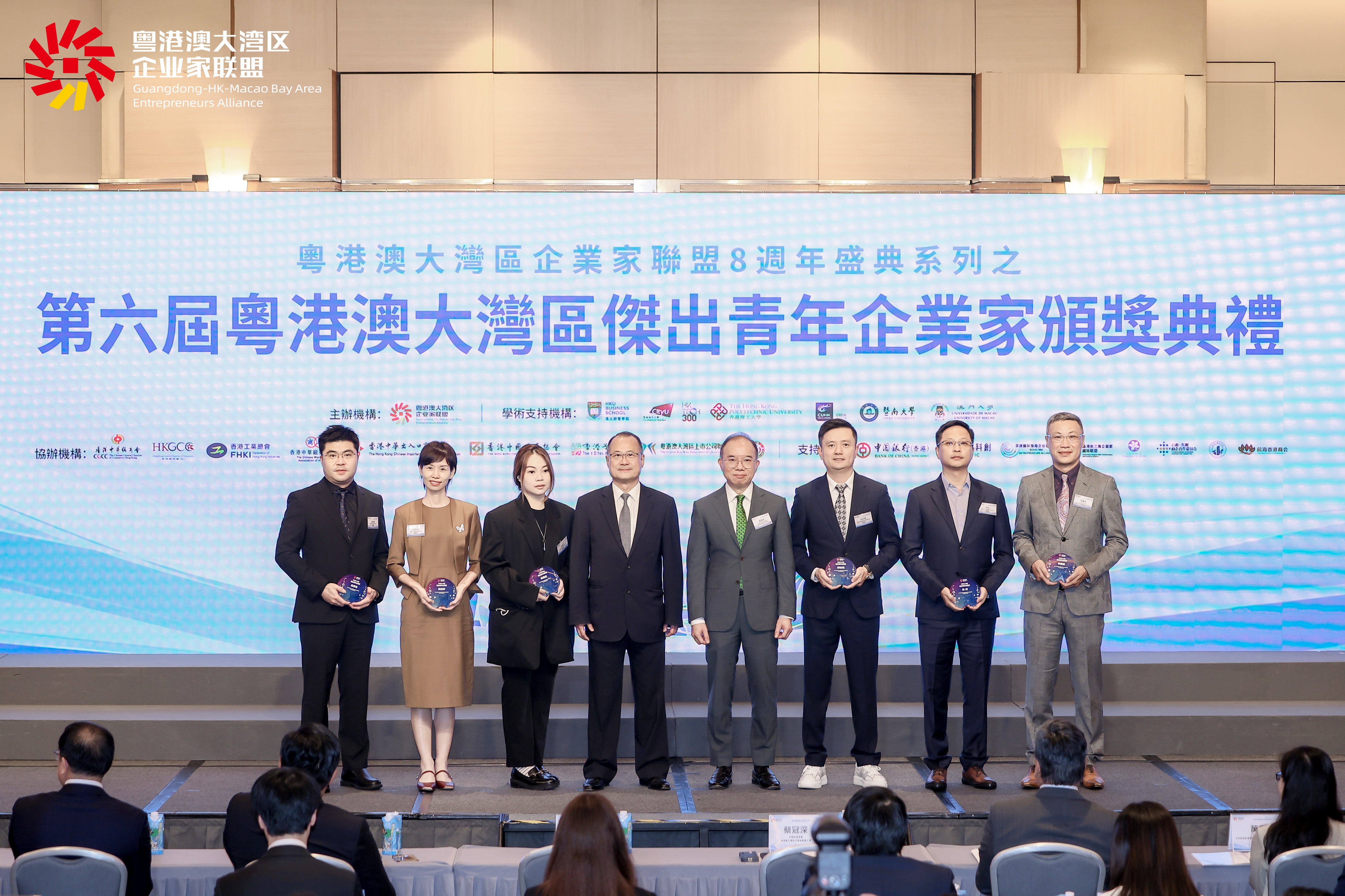 香港大中華通訊社電 第六屆粵港澳大灣區傑出青年企業家評選頒獎典禮於2025年9月22日在香港及澳門兩地同步舉行。評選活動由粵港澳大灣區企業家聯盟主辦,獲三地政府、高校、商會及媒體鼎力支持,旨在表彰青年企業家在大灣區建設中的貢獻,推動區域融合與高質量發展。本屆共79位青年企業家獲獎,並獲得三地政府領導及中央政府駐港聯絡辦的祝賀。