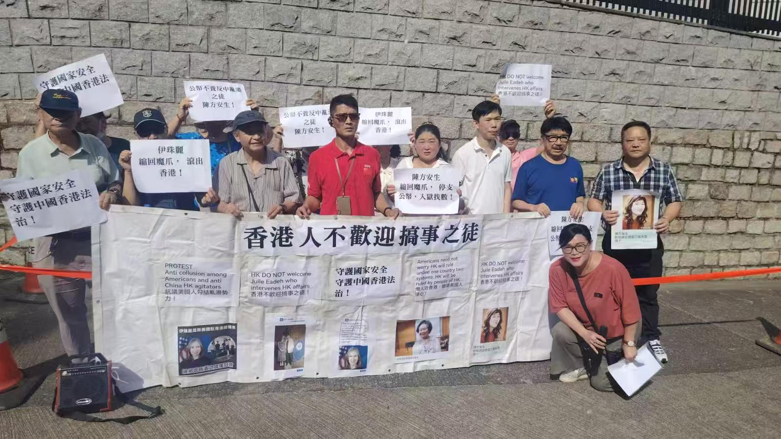 昨天(9月30日),又有一批香港市民前往美國駐港澳總領事館外示威,打出「強烈抗議伊珠麗亂港禍民」「強烈反對伊珠麗勾結亂港分子」「不容干涉香港事務」「不得干涉中國內政」「勿做亂港推手」等口號。伊珠麗的一場政治秀,令香港市民持續透過抗議表達不滿情緒,希望能夠引起此人深刻反思。