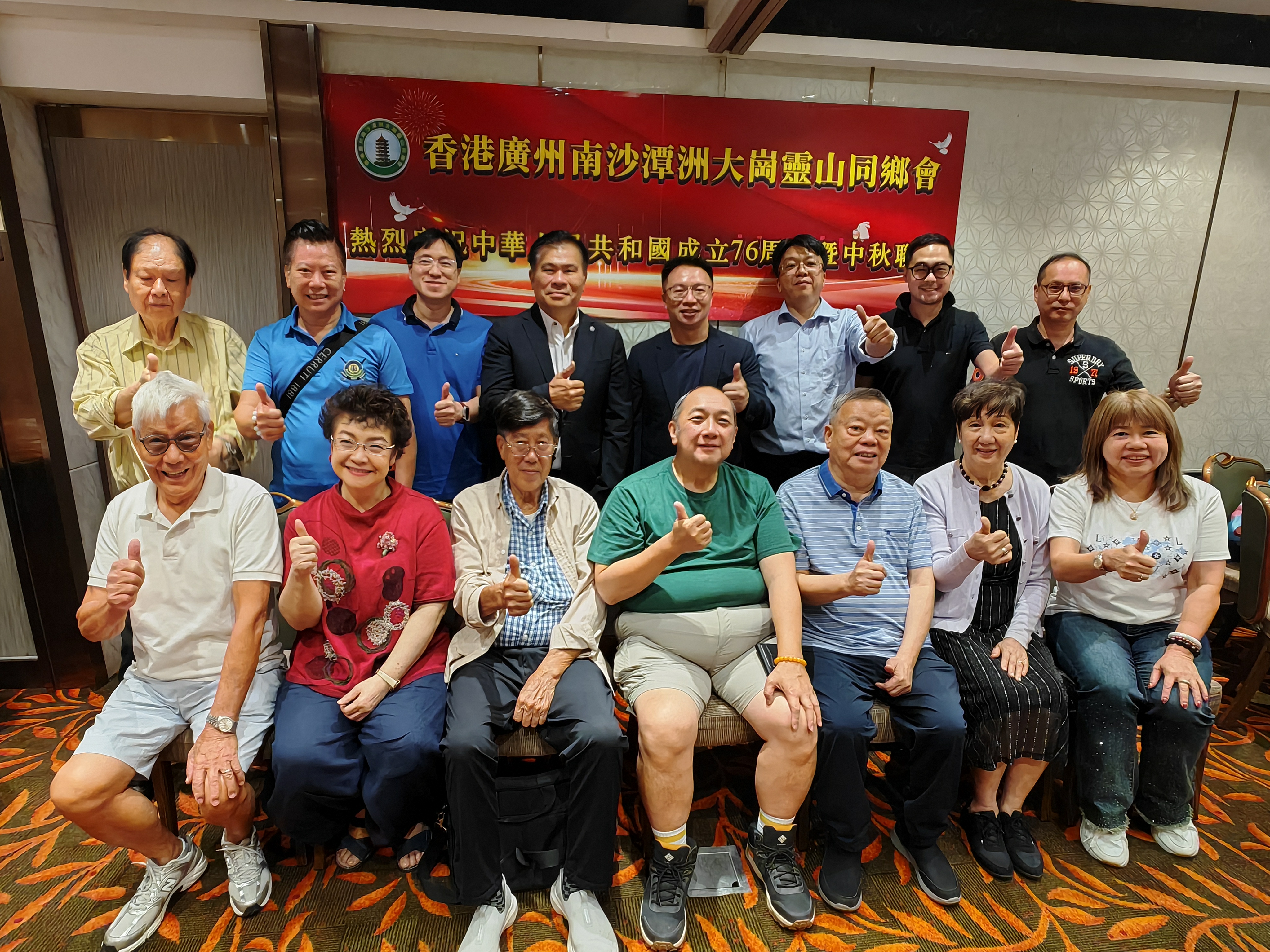 (香港訊)10月2日晚,香港廣州南沙譚大靈同鄉會假座尖沙咀緬甸台3號恆星樓,隆重舉行「賀國慶、迎中秋會員聯歡晚會」。現場氣氛熱烈,出席活動的包括同鄉會主席吳鏡波、會長區景泰,以及各位委員會成員與會員,共計60多人歡聚一堂。晚會亦榮幸邀請到香港南沙聯誼會主席易秉暉、副會長嚴偉豪、秘書長郭志明蒞臨祝賀,共同分享雙節喜悅,場面溫馨融洽。