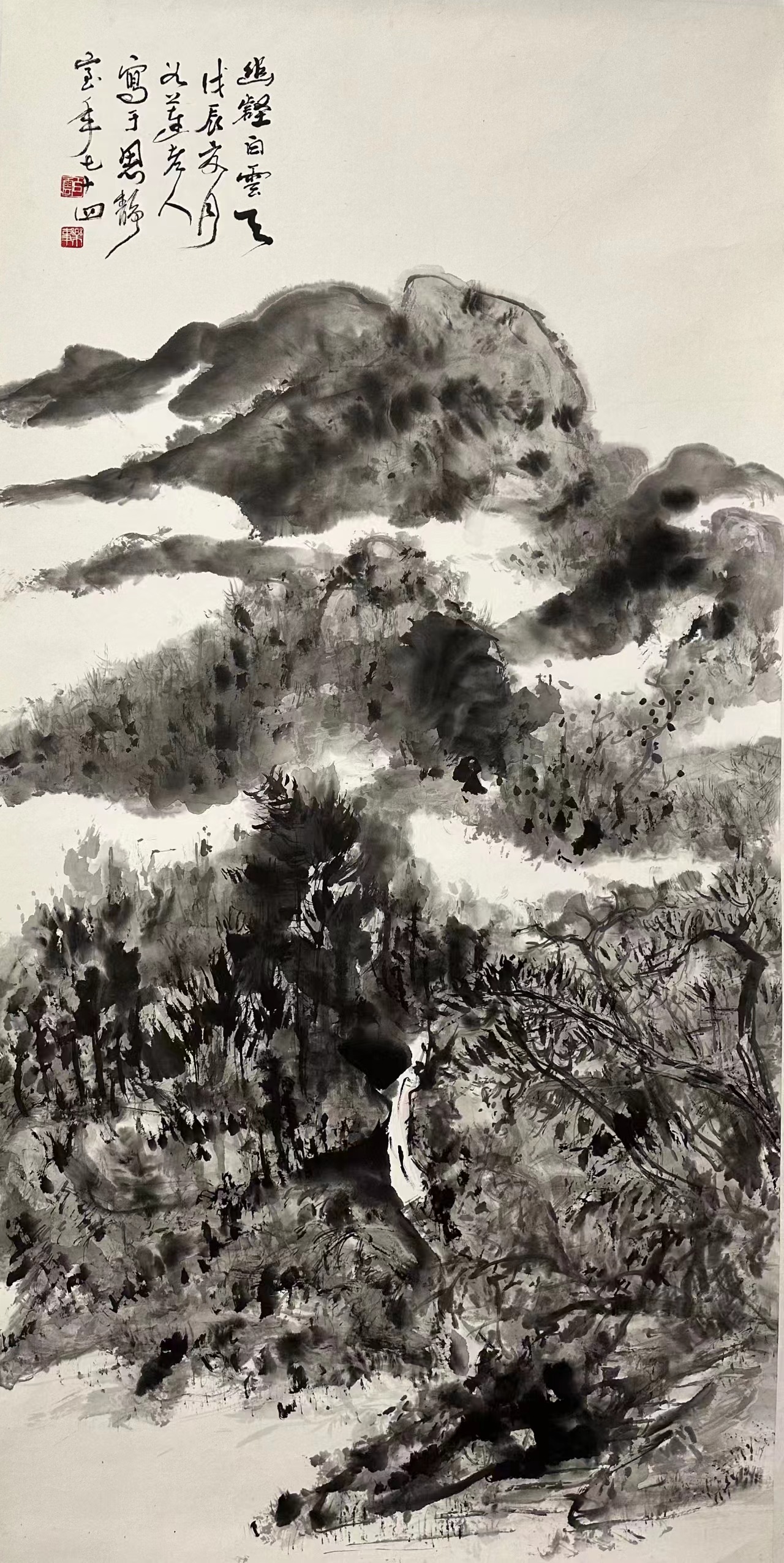 抗戰期間,攜家眷流徙于湘、桂、川、黔諸省,顛沛流離,九死一生,直至1949年定居貴陽。在近八十載的繪畫藝途中,上溯宋元,下汲明清,潛心傳統近七十年。晚年以造化為師,體味貴州“天無三日晴”之自然氣象,于山川煙雨中印證傳統,將古法化為己用,筆墨融於心性,多繪黔中野逸之景。其所提出“法、守、功、化”四字要義,尤見其對傳統與創新的深刻把握。早年作品文雅清新,晚年潑墨則進入生命之化境,蒼潤野逸、清空荒寒而又生機勃發、自由自在,呈現出一派混沌之中見澄明的藝術景象。