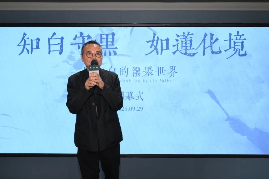 香港大中華通訊社電 由集古齋聯合太和藝術空間舉辦的「知白守黑 如蓮化境---劉知白的潑墨世界」展覽於2025年9月25日在香港中環中商藝術大廈二樓集古齋展覽廳隆重開幕。