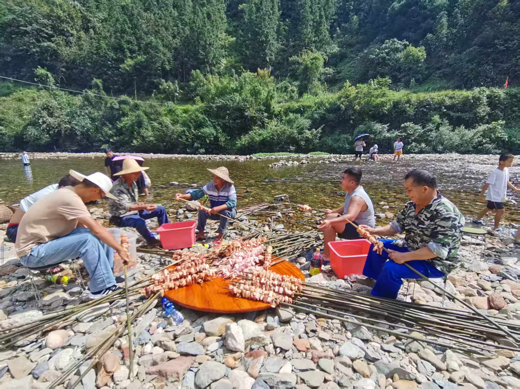 近年來,元寶村深挖“生態+文化”雙引擎,將燒魚節打造成一張閃亮的鄉村名片。從串魚時“三繞兩紮”的古法技藝,到沙灘文旅融合的沉浸式體驗,民俗的“根”與時代的“魂”在這裡交織生長。“未來,我們要讓燒魚節成為連接過去與未來的橋,讓苗寨的日子像炭火上的魚串,越烤越香!”賈明文的承諾,道出了村民對美好生活的熱望。