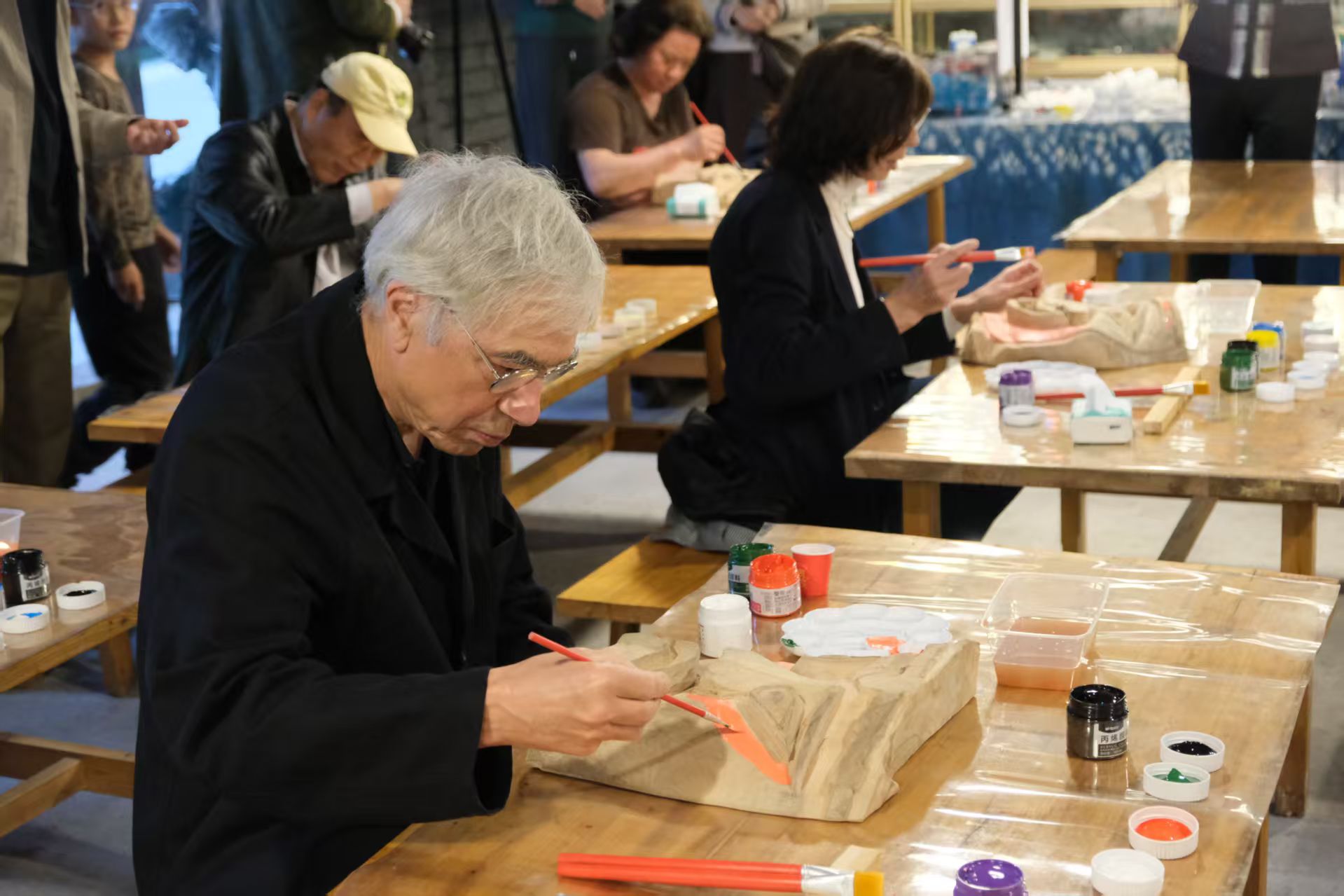 非遺工坊裏,苗族藝人現場繪製面具、浸染紮染,法國藝術家以畫筆互動,語言不通卻在創作中達成文化共鳴。