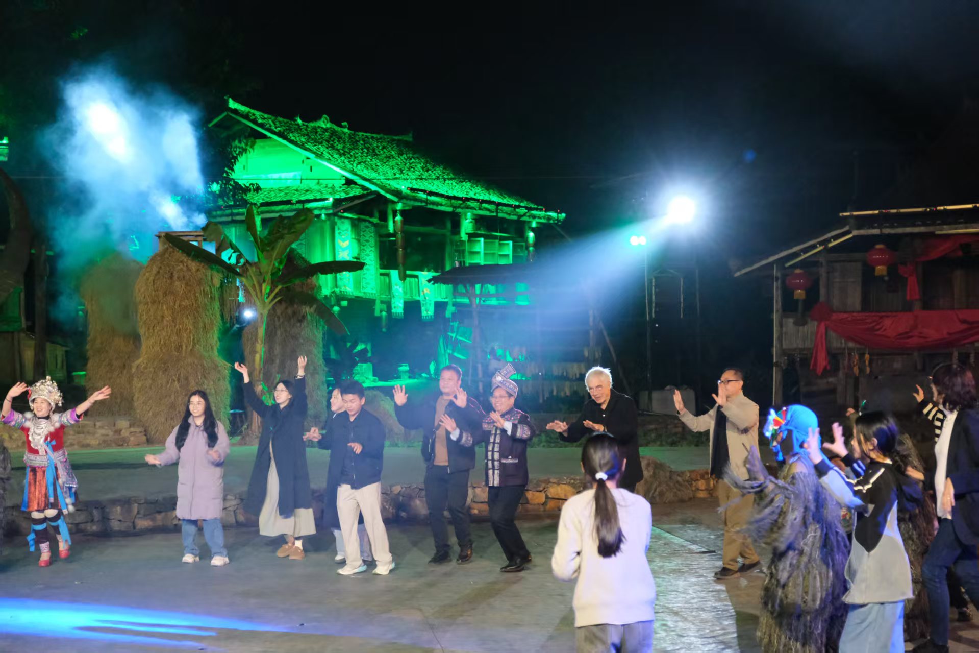 晚餐過後,大型實景演出《苗魅》如期上演,燈光與山水相融,歌舞與民俗交織,雷米・艾融一行沉浸其中,全方位領略了苗族文化的深厚底蘊與獨特魅力,為此次中法文化交流寫下圓滿注腳。